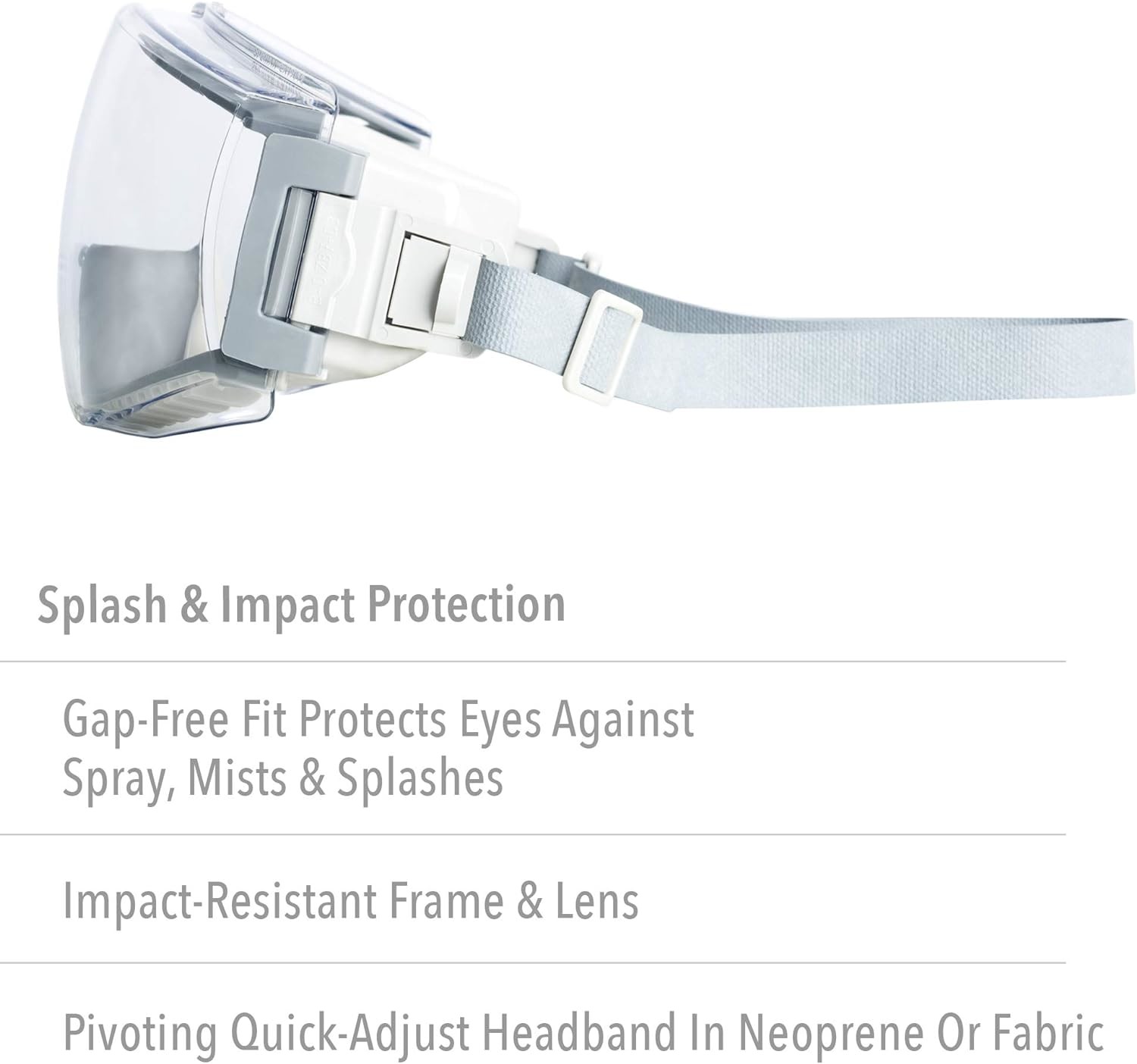 نظارات السلامة مع عدسة مضادة للضباب صافية HydroShield ، الجسم الرمادي والحزام الرئيسي من النيوبرين